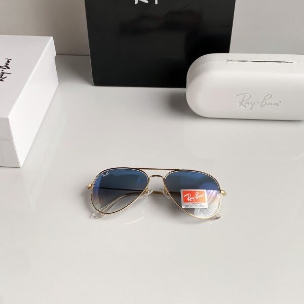 RAYBAN 3026 GOLD BLUE SHADED 61 SUNGLASSES