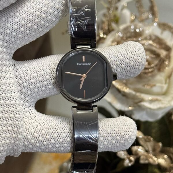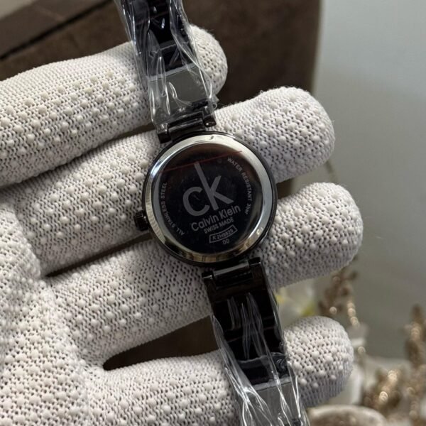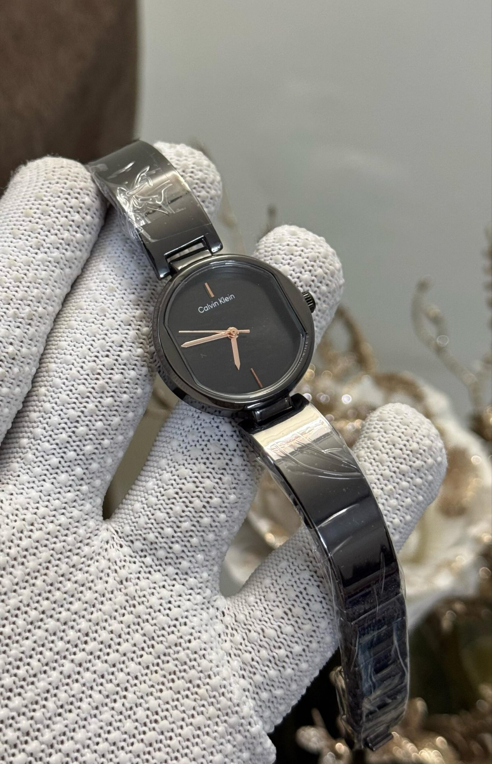 Calvin Klein women’s watch, black dial ladies watch, minimalist wristwatch, elegant Calvin Klein watch, women’s fashion watch, stainless steel watch for her, luxury timepiece, CK women’s watch.