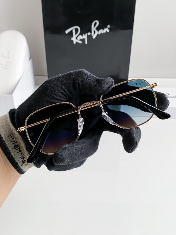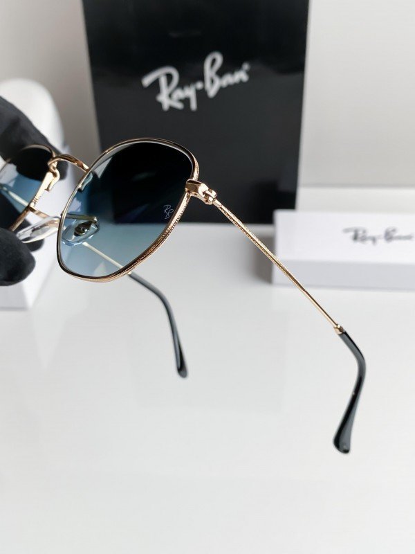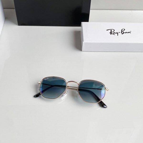 Ray-Ban 3548 Gold Blue Shaded Sunglasses – Modern Square Aviator Style