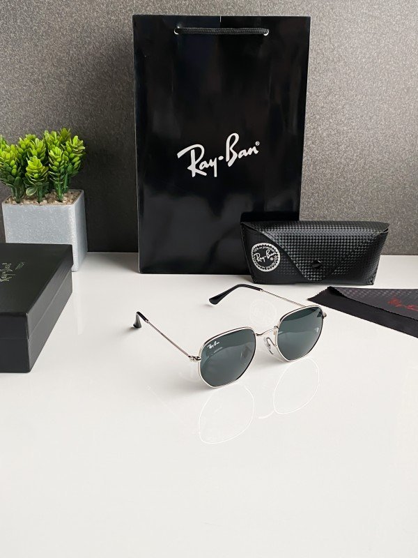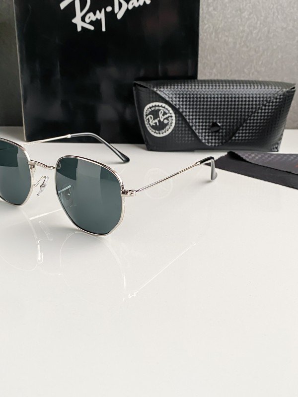 Ray-Ban 3548 Hexa Silver Black Sunglasses – Modern Hexagonal Aviator