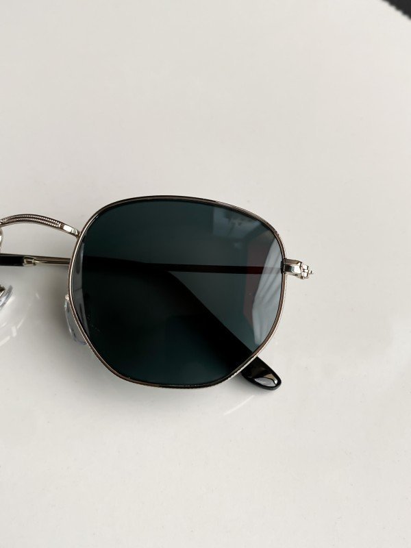 The Ray-Ban 3548 Hexa Silver Black Sunglasses feature a striking hexagonal frame in a polished silver metal finish paired with sleek black UV-protected lenses, delivering a bold and contemporary look. This model merges the classic aviator appeal with a modern geometric twist.